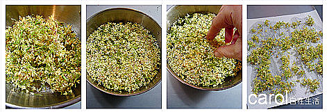 2.將桂花放在餐巾紙上瀝乾水份