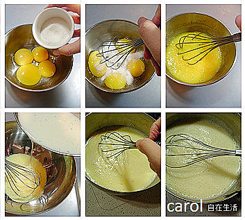 6.雞蛋黃+細砂糖用攪拌器打散混合均勻