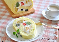 *葡萄柚蛋糕捲。Grapefruit roll cake